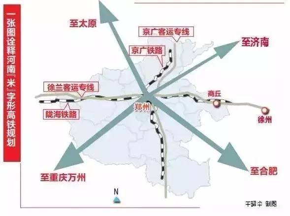 2020年以前,郑州将建成郑万高铁、郑合高铁两条高铁线路。并将加快推进郑州经濮阳至济南、郑州经焦作至太原铁路建设,在国家京广深港和徐兰快速客运通道的基础上,建设郑州至万州、郑州至济南、郑州至太原、郑州至合肥快速铁路。