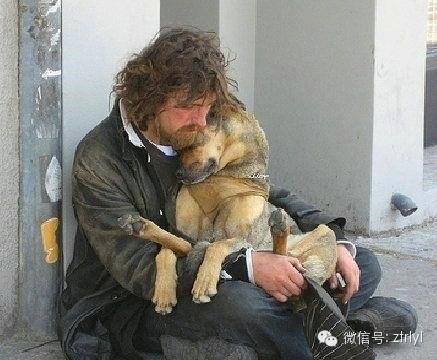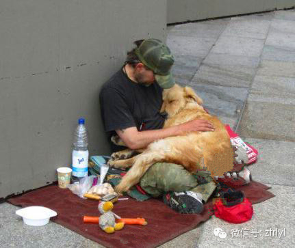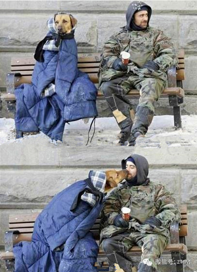 加拿大流浪汉,摄氏零下15度,用满是补丁的衣服把自己包得紧紧的,然后把他唯一的财产、或许也是最重要的财产睡袋给了他的狗狗。------你若不离,我定不弃。![]()