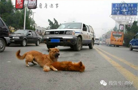 小狗遭遇车祸,同伴舍命救助,使尽全力想把小狗拖到路的对面。面对一辆辆呼啸而过的车辆,那只狗并没有一点胆怯的样子,反而全身掩护住小狗的身体。![]()