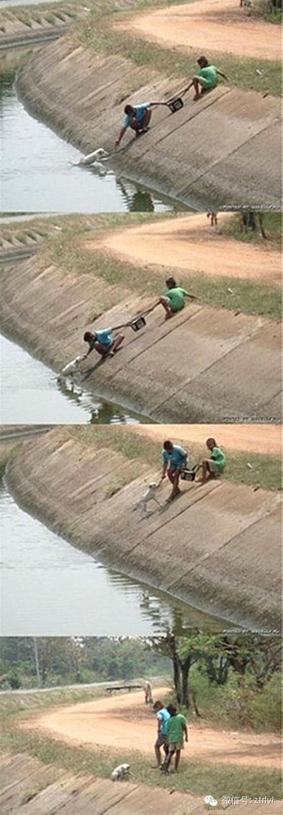 爱与慈悲就是你每一瞬当下的决断。你可以走过、可以嘲笑、可以向狗扔石头,你也可以像这俩小孩一样坚决的把它救上来!![]()