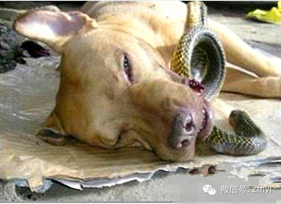 一只美国比特斗牛梗Chief,为了保护主人,勇敢和闯入屋内的眼镜蛇对抗,虽然最后成功将蛇杀死,但是这只狗也因为被咬伤而一命呜呼,在生命结束的前几秒钟,还不忘看着主人摇动着尾巴。![]()