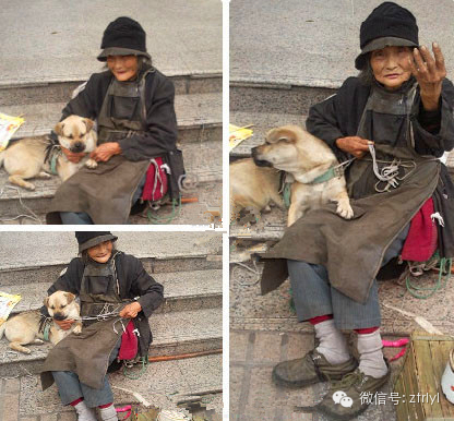 重庆新桥医院一角,一位80多岁的婆婆,带一只狗狗安静的坐在路边,帮小狗梳毛,乞讨瓷杯里有几元钱,见有人路过,就露出一个慈祥的微笑。婆婆耳聪目明,最小的孩子也40多了。她被孩子撵了出来,就睡在医院的角落。只有婆婆从小养大的小狗一直不离不弃的跟着她,有时候重感情的未必是人。![]()