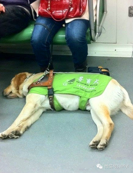 一号线上看到条导盲犬,主人是个女孩,一路都睡的很香甜,到站时主人轻轻动了动狗狗马上站起来,一边打哈欠一边等主人,下了地铁狗狗一路领着她在人群里穿梭,避开别人的推搡和拥挤,看了有点感动,真的很有爱。![]()
