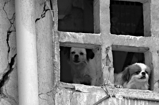 两只宠物狗在北川县城一处居民楼内向外眺望。汶川大地震虽然已经过去50多天,但宠物狗依然不离不弃,守望已经荒废的家园,期待主人的归来。或许他们会用一生的时光去回忆等待。![]()