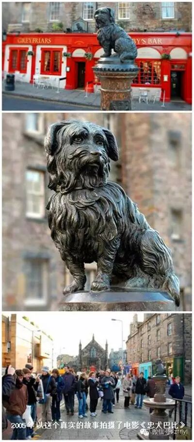 一位病重老人请流浪狗巴比吃了一顿晚饭,老人去世,当送葬者把棺木抬到墓地时,它也跟着队伍走,工人要它走开,它纹丝不动。不论大家怎么做巴比还是坚守在那里,动也不动。从那时开始,整整14年。爱丁堡广场,当地人为了纪念巴比,设立了一尊它的雕像。![]()