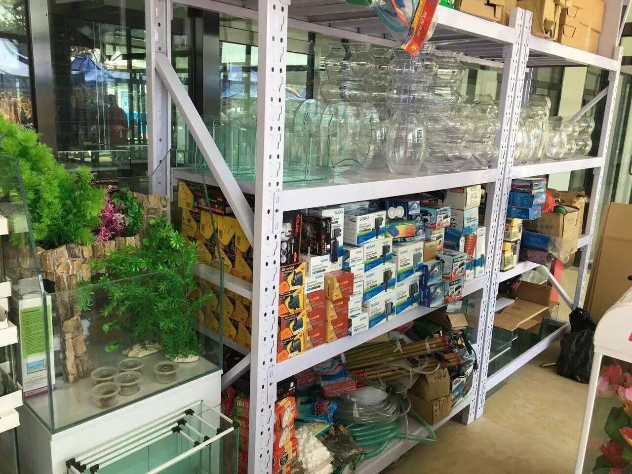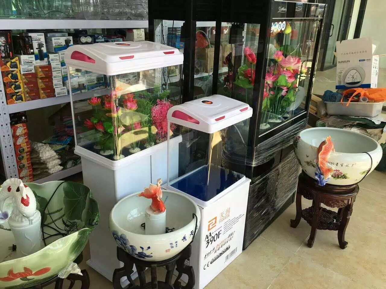 买完鱼发愁没地儿养,转身就能找到心仪的鱼缸,从大到小,各种款式。