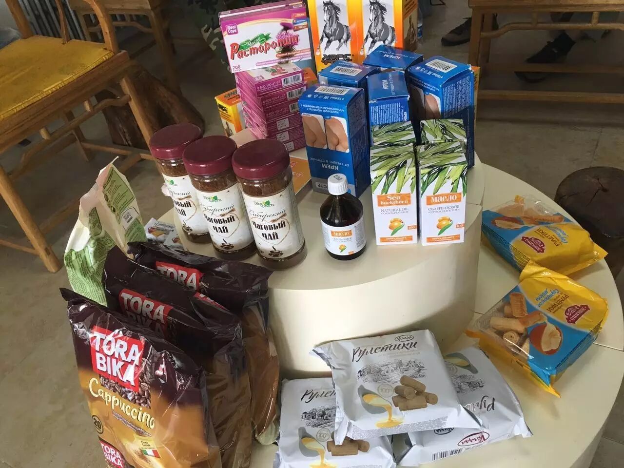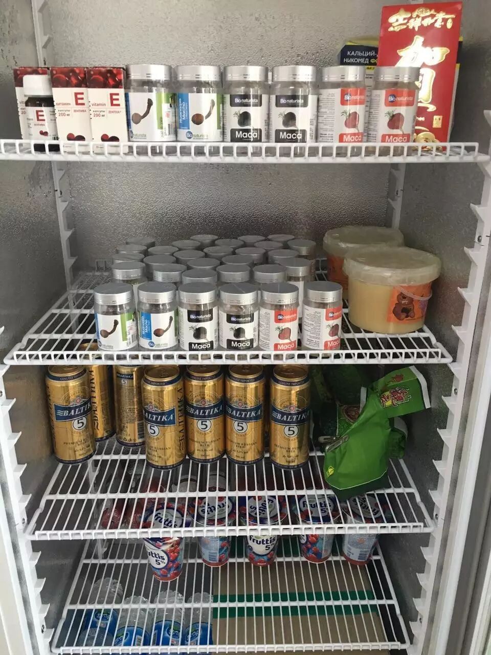 逛累了、饿了,第二排就有各种各样的进口食品,韩国的、日本的俄罗斯的应有尽有。