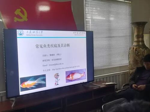 会上,大连海洋大学黎睿君博士首先为观赏鱼养殖户作了题为《常见鱼类疾病及其诊断》的报告;鞍山三台子观赏鱼交易中心总经理石全成为专家们介绍了我市观赏鱼产业发展现状;专家们和养殖户还就孔雀鱼、地图鱼、红剑鱼、金鱼等鱼类品种养殖过程中存在的病害难题进行分析交流。随后,专家们走进张忠堡村等地的观赏鱼养殖大棚,为养殖户提供上门服务并现场答疑。