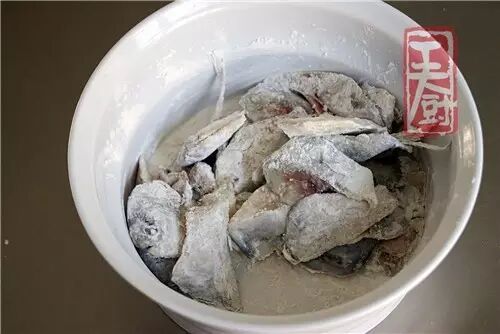 6、 取一个器皿,放入片好的小鲳鱼,加盐![]()