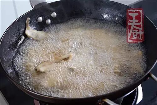 8、 蘸好干淀粉的小鲳鱼放到五成热的油锅里炸到金黄色![]()