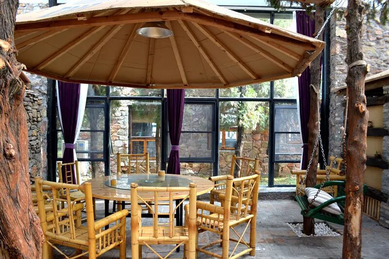 庄园内自助烧烤主要位置在紫海蓝山庄园散客餐厅后院烧烤区,另外,订房顾客如您订的房间带有小院,也可租赁烧烤炉在小院内自助烧烤。