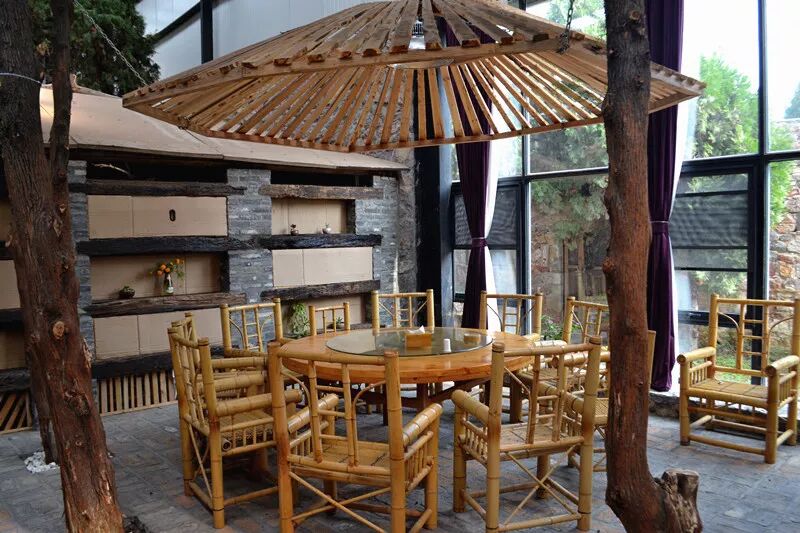 阳光房散客小桌临近柴锅室,自助柴锅的游客可将烹制好的菜品端到此桌享用;也可接待散客,灵活多用。