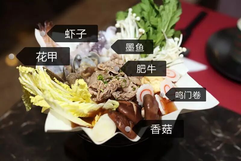 采用鲣鱼、柴鱼熬煮的鱼汤作为锅底,不加任何调味料,以昆布上的海盐入味,因此汤汁浓郁,香甜可口。