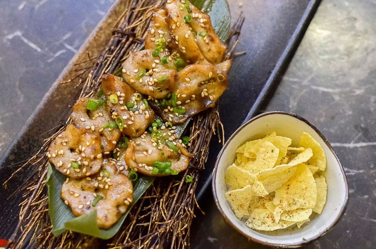 炭烤牛舌,香浓的烧烤酱汁,再撒上芝麻,牛舌在口中韧劲十足,配点薯条嘎吱脆!