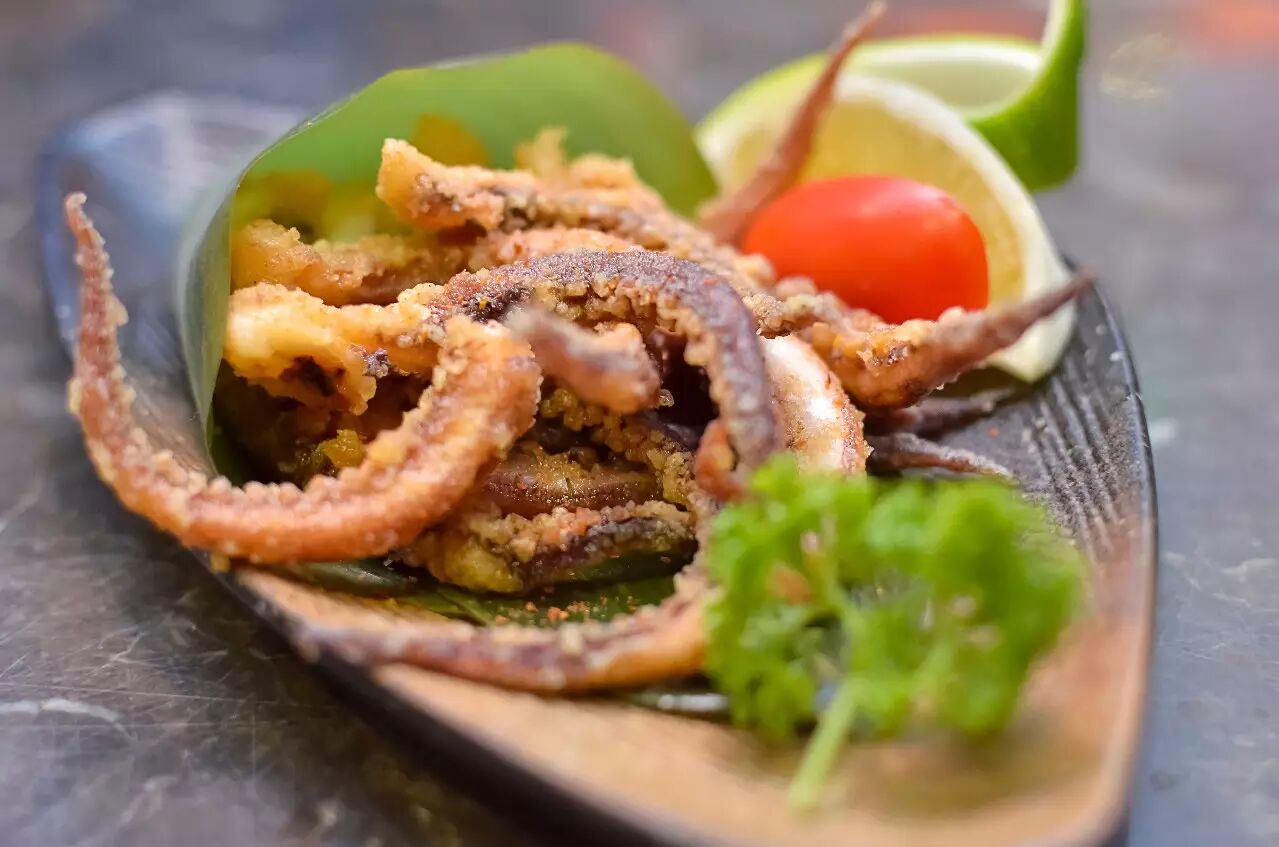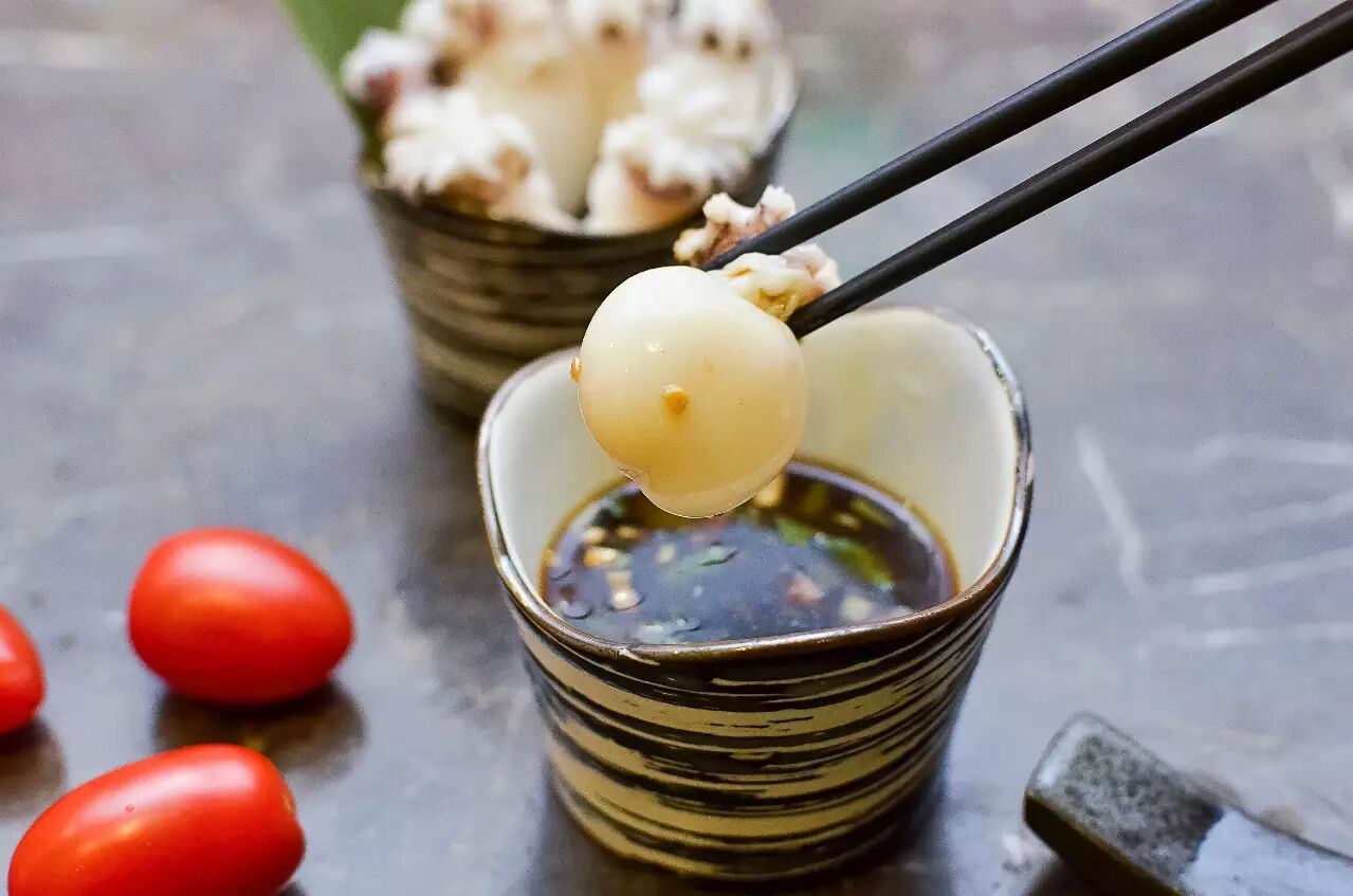 圆碌碌的墨鱼仔裹上特色酱汁,咬在嘴里Q弹脆口,吱吱作响!
