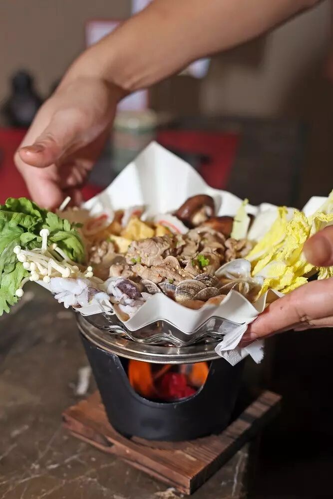 用纸做锅子,难以想象!纸火锅采用特殊的油纸制作而成,可在高温下烹煮3个小时,且有吸收杂质油腻的特性,能维持汤底的清爽,使久煮的食物保有原本的鲜美。
