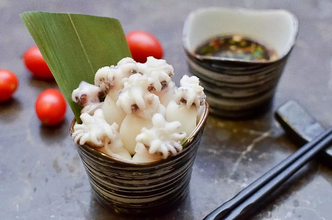 这道菜的名字叫芥末墨鱼宝宝,像一朵小盆栽,好可爱呢!