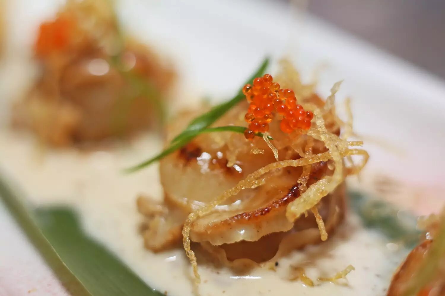 帆立贝,外表烤得微微焦黄,贝壳肉却柔嫩可口,形成强烈的反差!