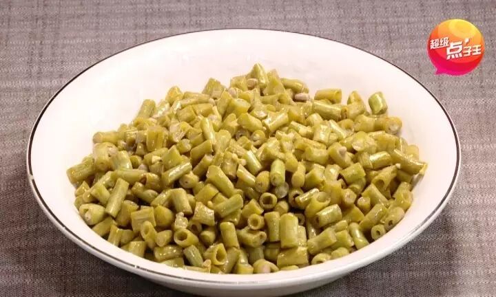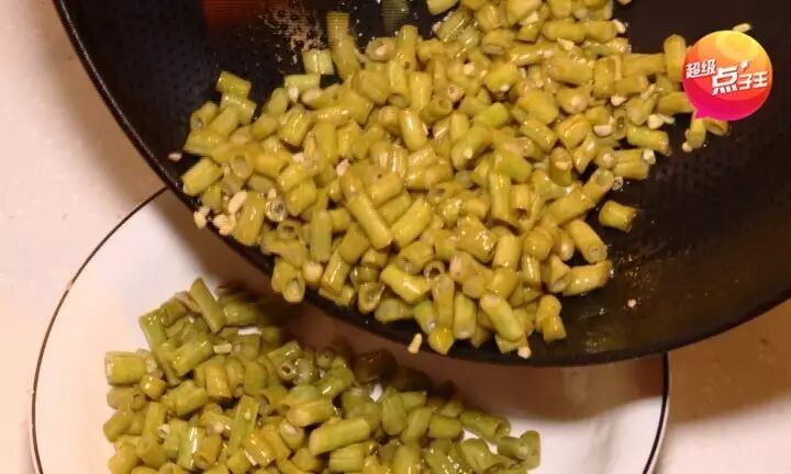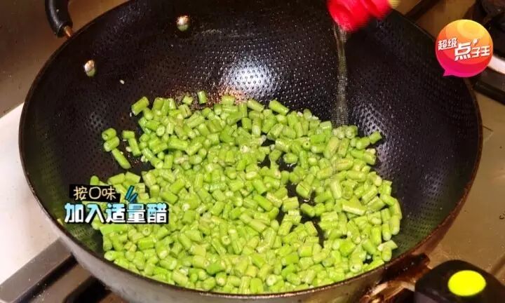然后加入白醋再炒5分钟,酸豆角就做好了。▽