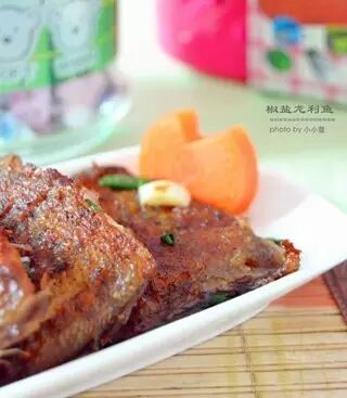 ● 加入适量的椒盐,略微翻炒到鱼块入味即可装盘