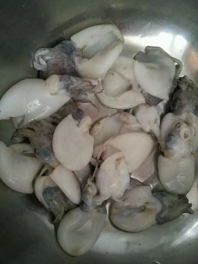 1. 墨鱼去内脏,除吸盘,取嘴。洗净备用