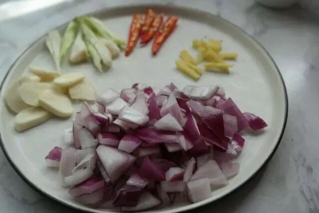 7. 起炒锅倒油,依次爆香姜葱小米椒