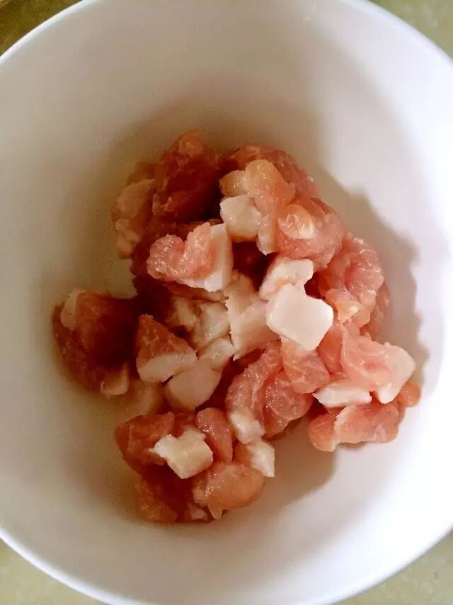 8. 化好后 加一点盐和干淀粉抓匀 锅内放水待水8-9成热时 放入墨鱼仔 养熟8成熟捞出待用