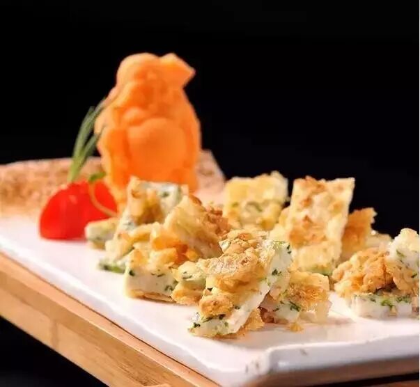 2、下锅前,沾适量的番薯粉油炸,不宜多沾,以免过于黏糊而不够香酥。