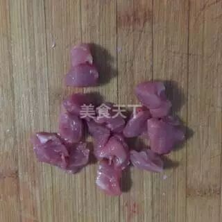 1、鸡肉切小块,加入酱油、料酒、淀粉和适量盐油拌匀腌制一会儿