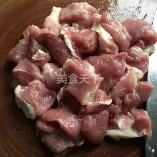 2、肉洗净切成小块。
