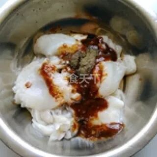 3、加入料酒,生抽,姜末,胡椒粉 ,盐 藤椒搅匀,放冰箱冷藏腌制12个小时,中途翻身2-3次