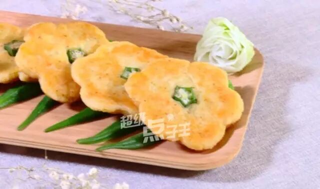 两边都变得金黄诱人以后,这道色香味俱全的秋葵土豆饼就做好了。▽