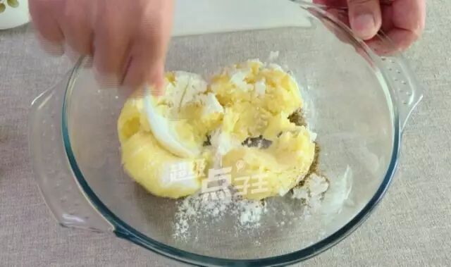 把土豆放入保鲜袋里,用擀面杖压成土豆泥。▽
