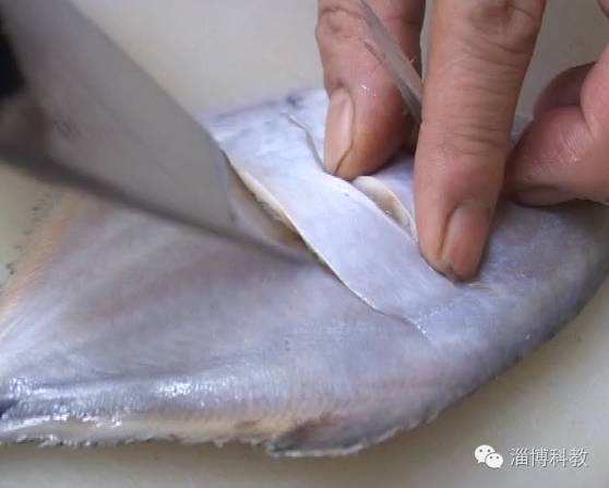 先把鱼化冻,舟山海捕鲳鱼化开之后,鱼背出现呈现淡淡的蓝色,整个鱼肉的纹理也是清晰可见。