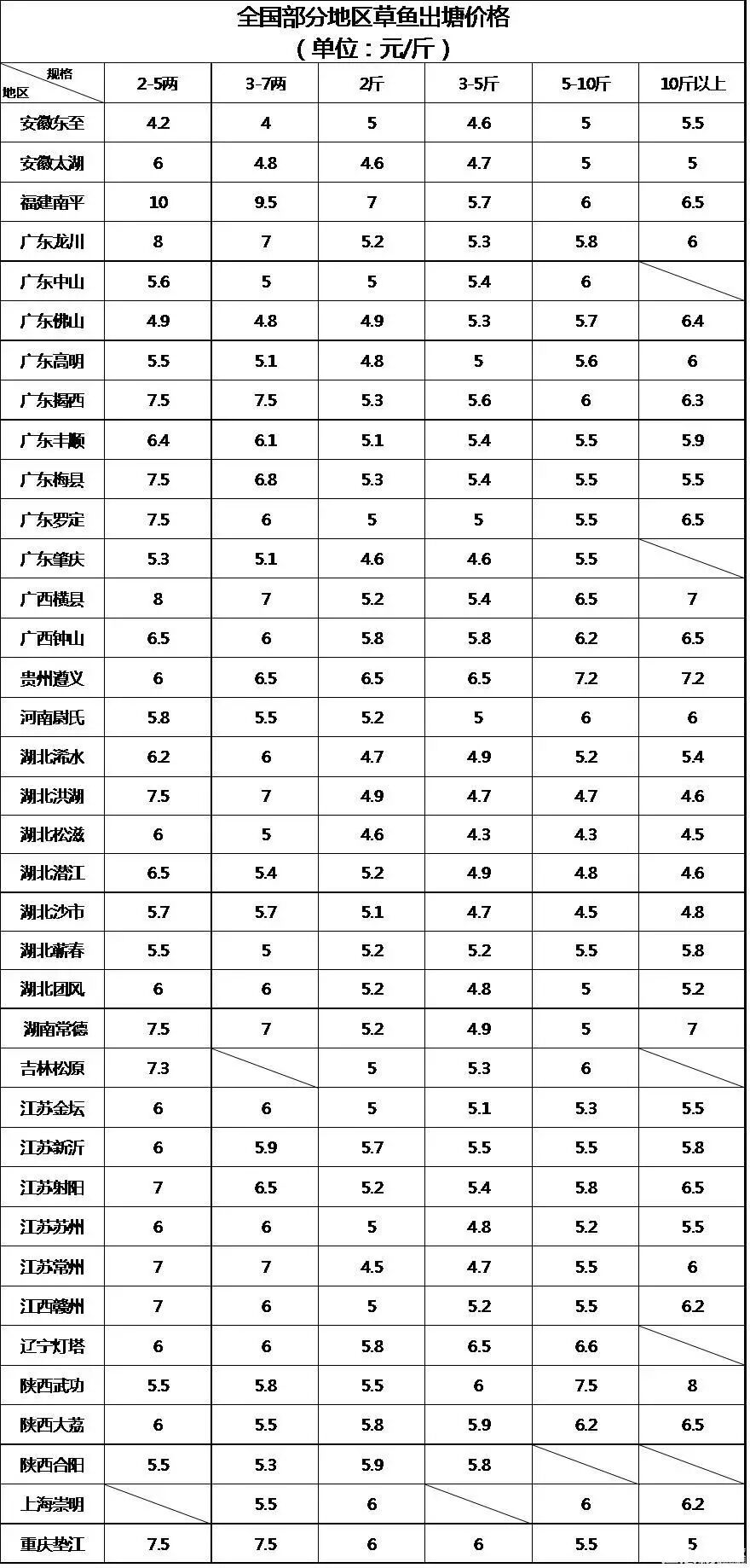 以下是全国部分地区淡水鱼出塘价格,有出鱼需要的朋友可以参考——