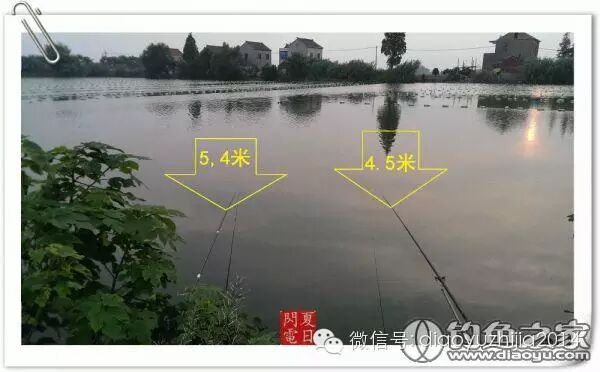 到河边后,由于事先准备工作做的充分,所以很快就下钩垂钓了。双杆作战,左边的是5.4米手竿,右边的是4.5米: