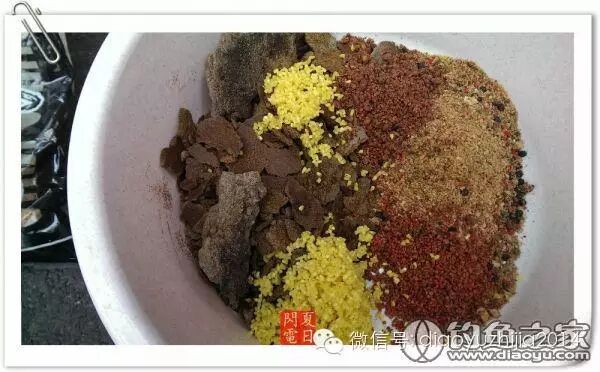考虑到天黑以后,在河边不方便拌制窝(饵)料,所以下午5点半左右,在家就把这些“食材”准备好!