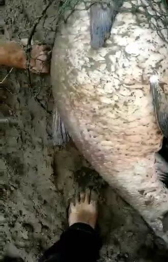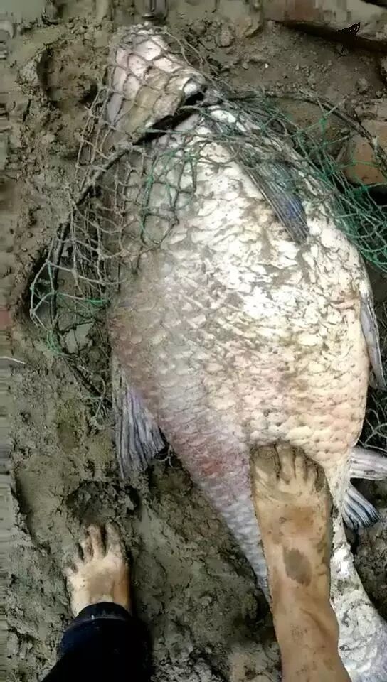 鳊鱼,又叫武昌鱼,刺多肉嫩,生长缓慢,一般5斤都算巨物,然而那条大鳊鱼,至少有三四十斤,鱼鳍都快跟人脚一样大!