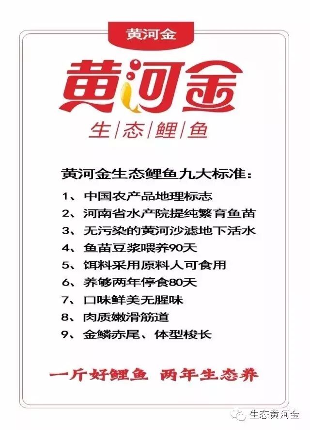 清蒸鲤鱼美,生态黄河金,黄河金生态鲤鱼采用目前国内比较先进生物发酵技术配制而成的保健型黄河鲤鱼饲料,可有效促进黄河鲤鱼的摄食行为,明显提高黄河鲤鱼摄食后的饲料转换,不仅快速促进生长,还可以维持鱼体肠内微生物菌群的相对稳定,并抑制有害菌和病原菌数量的增长,从而保持鱼体的成长畅行无阻。革命性地突破了黄河鲤鱼不能清蒸的历史,清蒸黄河鲤鱼的问世,大大丰富和改变了人们餐桌上的佳肴美味。