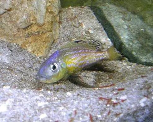 直升机:饲养难度中等,最大体型10-15cm,建议鱼缸长度100cm,水体150L以上,每次繁殖30条左右。早10几年前,Aulonocranus dewindti直升机已经在台湾市场十分流行,并随着随着台湾市场繁殖鱼的引进来到国内。因其体型上比较接近蓝波,外加身体两侧的闪电纹路,Aulonocranus dewindti直升机又被关于“闪电蓝波”的别名。一公多母搭配最佳,底部要提供沙质,供公鱼筑巢。