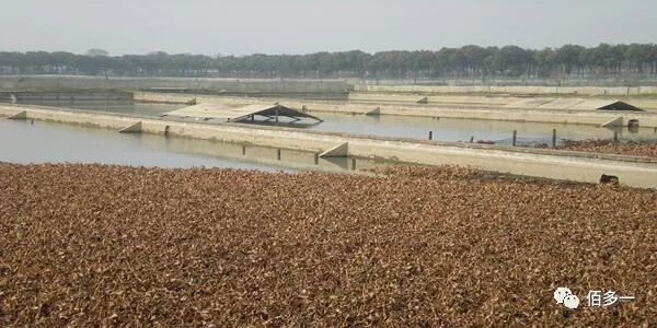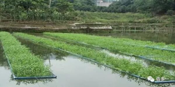 每个池塘用水泥板或木板搭建8~10个饵料台,饵料台长2.5m,宽1m,高出水面15~25厘米,以300~400角斜放固定在池塘中。