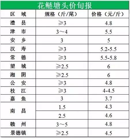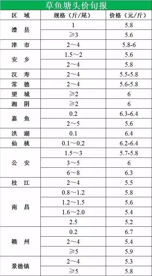 统计员简评:本周鱼价较上周相比小草鱼有所上涨,其他均无太大变化,行情稳定,详情如下:
