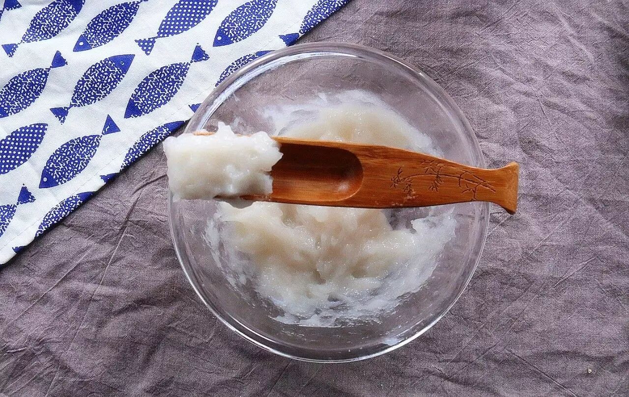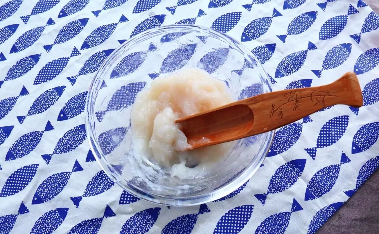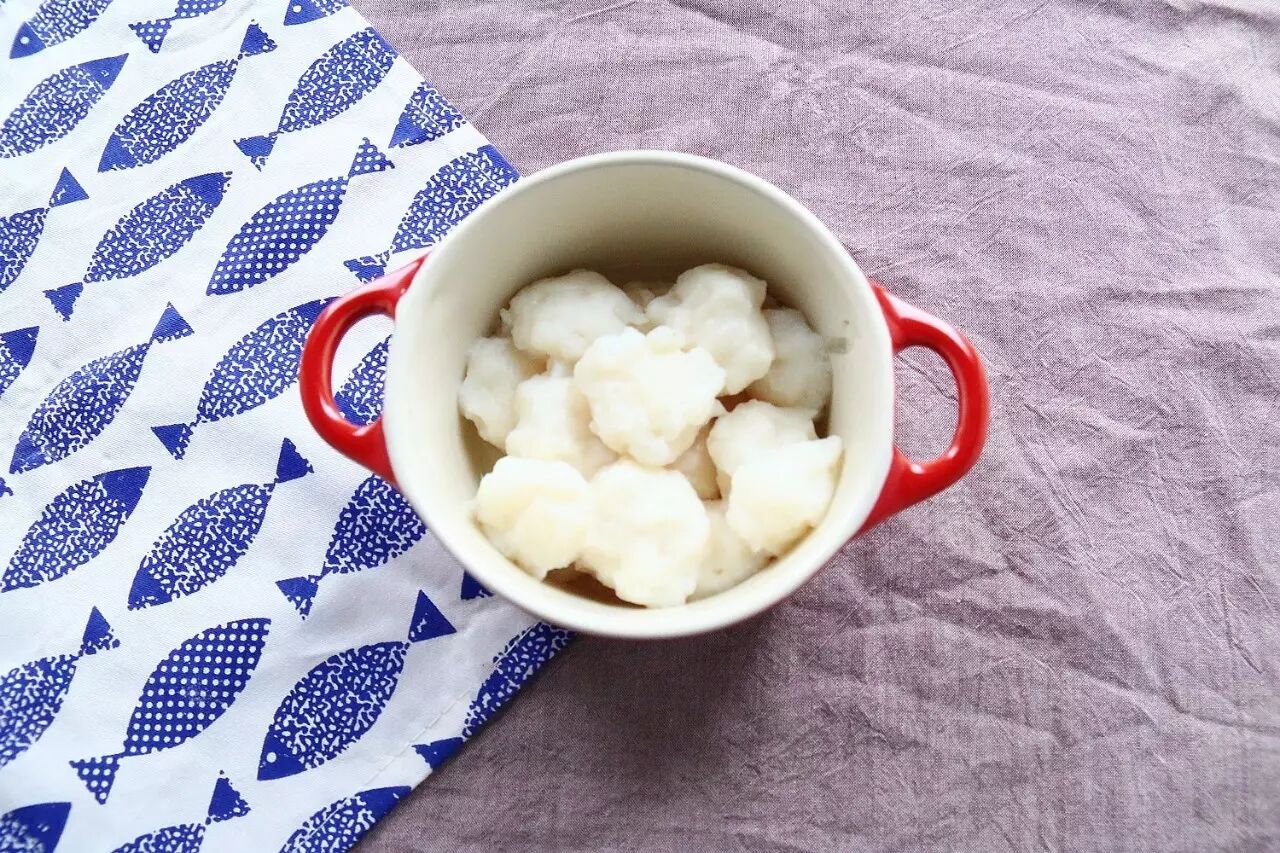 2、我给宝宝做鱼丸的时候,把打好的鱼茸大力的搅拌了大概20分钟,搅拌的久一点可以让鱼茸更细腻,宝宝吃起来口感更好哟!