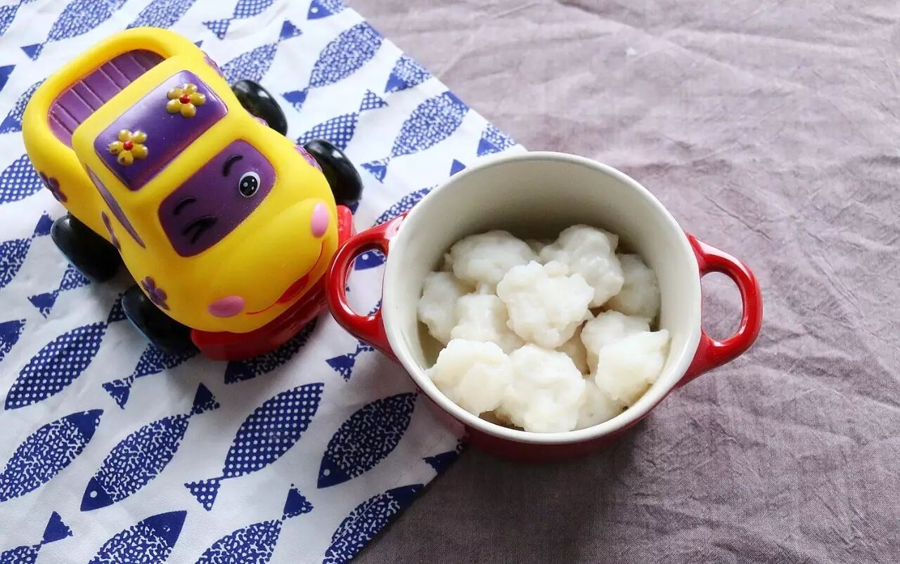 步骤 7:宝宝一次吃5、6个就可以了,如果宝妈做的较多,可以把剩下的用保鲜袋装起来,放进冰箱里储藏,下次吃的时候再煮一下就好了,还能搭配面条,做鱼丸面给宝宝吃。