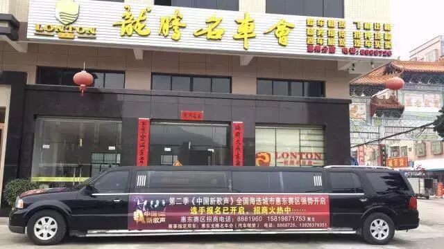 广州市龙腾名车汽车租赁有限公司惠州分公司,位于惠东华美达酒店对面,青云牌坊侧。公司主要经营:婚庆租车,名车展览,商务租车,礼仪用车,广告拍摄等一系列交通工具租赁。