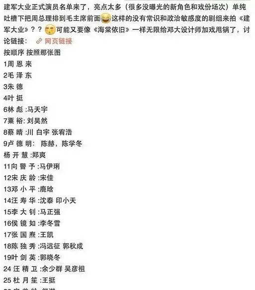 但是到了《建军大业》,俨然变成小鲜肉合拍偶像剧的节奏,且看演员演职表(部分):