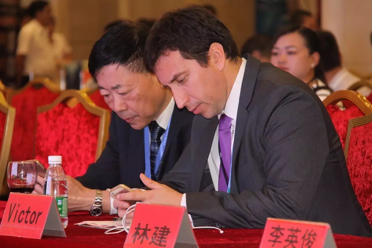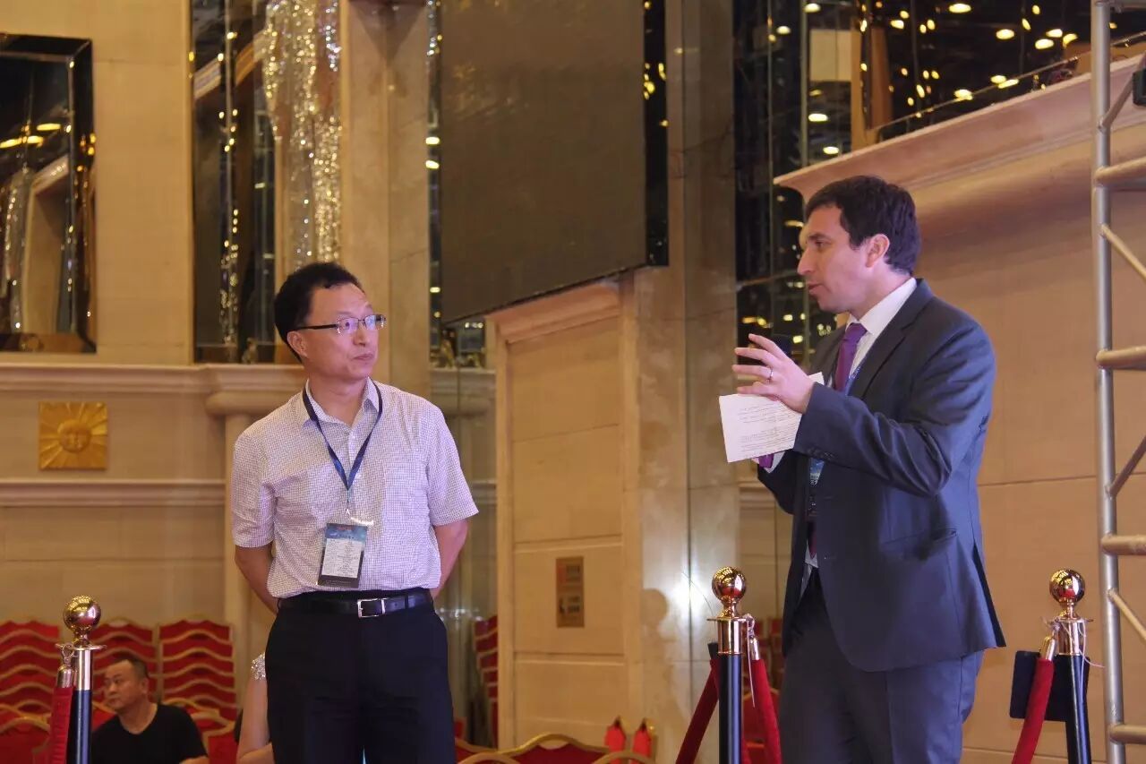 ▲ 高龙集团副总裁林建、武汉高龙总经理赵新安与酒店客人就合作深度交流