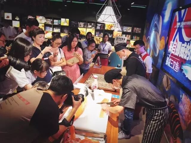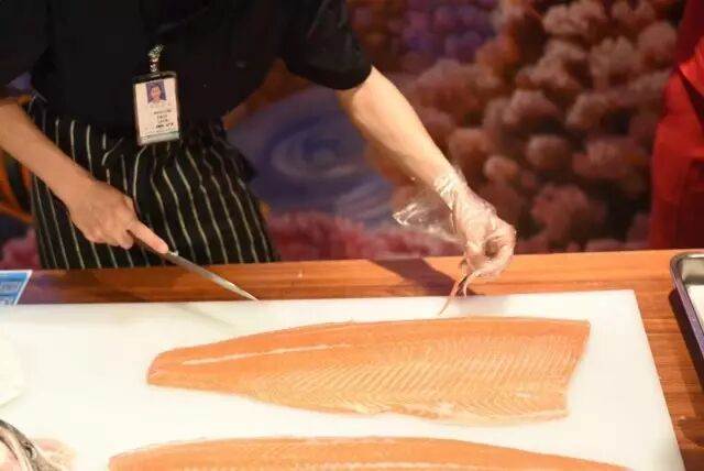 活动现场,大洋世家的专业工作人员还为到场的媒体和顾客进行了专业的三文鱼分解教学演示,并提供了三文鱼刺身免费品尝。