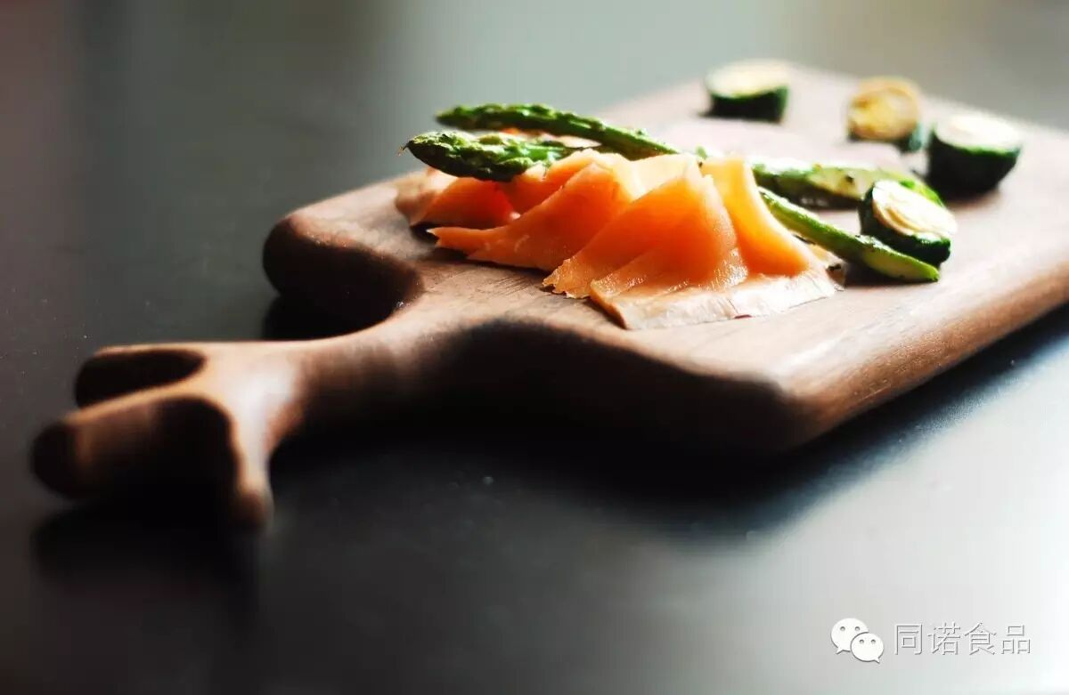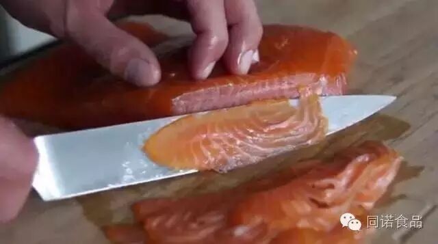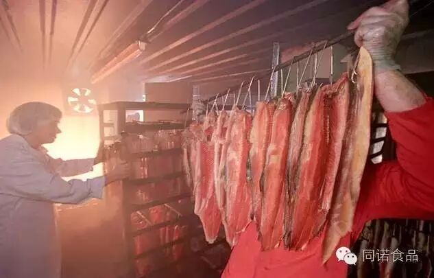 从工艺上讲,烟熏三文鱼分冷熏和热熏。制作烟熏三文鱼并不是将整条三文鱼进行烟熏,而是使用三文鱼鱼柳,便于入味和食用。
