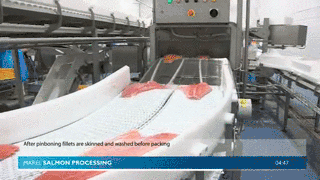 没想到只是吃一口鱼肉竟然还要这么麻烦,火箭小妹真是心累啊,但是呢不用担心,这只是手工操作而已,由于三文鱼的味道过于鲜美,全世界喜欢吃的人数不胜数,所以为了顺应广大三文鱼爱好者,早已有一套完整的清理三文鱼的机器,几乎是纯机器操作,不用经过人手。
